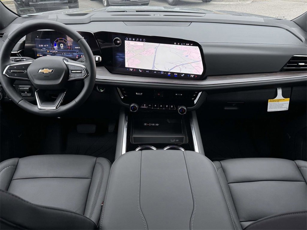 APPLY FOR FINANCING ONLINE, ONLINE APPRAISALS AVAILABLE, 1st and 2nd Row Color-Keyed Carpeted Floor Mats, 1st and 2nd Rows All-Weather Floor Liners, 2-Speed Active Electronic AutoTrac Transfer Case, 2-Way Power Driver Lumbar Seat Adjuster, 2-Way Power Front Passenger Lumbar Seat Adjuster, 2nd Row Power Release 60/40 Split-Folding Bench Seat, 3-Spoke Wrapped Steering Wheel, 3.23 Rear Axle Ratio, 3rd Row 60/40 Power-Folding Split-Bench Seat, 3rd Row All-Weather Floor Liners, 3rd Row Manual 60/40 Split-Folding Bench Seats, 3rd row seats: split-bench, 4-Wheel Disc Brakes, 6 Speakers, 6-Speaker Audio System Feature, 8-Way Power Driver Seat Adjuster, 8-Way Power Front Passenger Seat Adjuster, ABS brakes, Advanced Trailering Package, Air Conditioning, All-Weather Cargo Mat, All-Weather Liner Protection Package, Alloy wheels, AM/FM radio: SiriusXM with 360L, Apple CarPlay/Android Auto, Auto High-beam Headlights, Auto-Dimming Inside Rear-View Mirror, Automatic temperature control, Black Mirror Caps, Black Name Plates, Blind Zone Steering Assist with Trailering, Bose 10-Speaker Centerpoint Surround Audio System Feature, Brake assist, Bumpers: body-color, Color-Keyed Carpeting Floor Covering, Comfort Package, Compass, Dark Essentials Package, Delay-off headlights, Driver door bin, Driver vanity mirror, Dual front impact airbags, Dual front side impact airbags, Electronic Stability Control, Emergency communication system: OnStar and Chevrolet connected services capable, Exterior Parking Camera Rear, Extra Capacity Cooling System, Floor Console with Storage Area, Four wheel independent suspension, Front and Rear Black Bowtie Emblems, Front anti-roll bar, Front Bucket Seats, Front Center Armrest, Front dual zone A/C, Front LED Fog Lamps, Front reading lights, Frontal Driver and Outboard Passenger Airbags, Fully automatic headlights, Heated 2nd Row Outboard Seats, Heated door mirrors, Heated Driver and Front Passenger Seats, Heated front seats, Heated Steering Wheel, Hill Descent Control, Hitch View with Pan/Zoom Image Adjustment, Illuminated entry, Integrated Trailer Brake Controller, Interior Camera, Key Card, Leather-Appointed Seat Trim, LED Headlamps with LED Daytime Running Lamps, LED Tail Lamps, License Plate Front Mounting Package, Low tire pressure warning, Luxury Package, Max Trailering Package, Memory seat, Memory Settings, Memory Settings For Driver, Navigation system: Google built-in compatibility (select service plan required, terms and limitations apply), Occupant sensing airbag, Outside Heated Power-Adjustable Mirrors, Outside temperature display, Overhead airbag, Overhead console, Panic alarm, Passenger door bin, Passenger vanity mirror, Power door mirrors, Power driver seat, Power Liftgate, Power passenger seat, Power Release 2nd Row Bucket Seats, Power steering, Power windows, Preferred Equipment Group 1LT, Premium audio system: Chevrolet Infotainment 3 Premium, Premium Smooth Ride Suspension, Radio data system, Radio: 17.7" Diagonal Advanced Color LCD Display, Rain sensing wipers, Rear air conditioning, Rear anti-roll bar, Rear Power Liftgate, Rear reading lights, Rear seat center armrest, Rear window defroster, Rear window wiper, Remote keyless entry, Remote Start, Security system, SiriusXM with 360L Trial Subscription, Smart Trailer Integration Indicator, Speed control, Speed-sensing steering, Split folding rear seat, Spoiler, Steering wheel mounted audio controls, Tachometer, Telescoping steering wheel, Tilt steering wheel, Traction control, Trip computer, Universal Home Remote, USB Ports, Variably intermittent wipers, Voltmeter, Wheels: 18" x 8.5" Bright Silver Painted Aluminum, Wheels: 20" x 9" Machined Aluminum, Wireless Phone Charging.