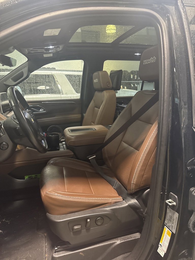 Recent Arrival! APPLY FOR FINANCING ONLINE, ONLINE APPRAISALS AVAILABLE, 10 Speakers, 15" Diagonal Multi-Color Head-Up Display, 1st & 2nd Row Color-Keyed Carpeted Floor Mats, 2-Speed Active Electronic AutoTrac Transfer Case, 3.23 Rear Axle Ratio, 3rd Row 60/40 Power-Folding Split-Bench Seat, 3rd row seats: split-bench, 4-Wheel Disc Brakes, ABS brakes, Adaptive Cruise Control, Adaptive suspension, Air Conditioning, Alloy wheels, AM/FM radio: SiriusXM with 360L, Apple CarPlay/Android Auto, Auto High-beam Headlights, Auto-dimming door mirrors, Auto-dimming Rear-View mirror, Auto-leveling suspension, Automatic temperature control, Bose 10-Speaker Centerpoint Surround Audio Sys Ft, Brake assist, Bright Front & Rear Door Sill Plates, Bumpers: body-color, Chrome Door Handles w/Body-Color Strip, Color-Keyed Carpeting Floor Covering, Compass, Delay-off headlights, Driver & Front Outboard Passenger Airbags, Driver door bin, Driver vanity mirror, Dual Exhaust System, Dual front impact airbags, Dual front side impact airbags, Dual-Pane Power Panoramic Sunroof, Electronic Stability Control, Emergency communication system: OnStar and Chevrolet connected services capable, Enhanced Automatic Emergency Braking, Enhanced Driver Information Center, Exterior Parking Camera Rear, Floor Console, Four wheel independent suspension, Front anti-roll bar, Front Bucket Seats, Front Center Armrest, Front dual zone A/C, Front High-Back Reclining Bucket Seats, Front reading lights, Fully automatic headlights, Garage door transmitter, Hands-Free Rear Power Programmable Liftgate, HD Surround Vision, Heads-Up Display, Heated & Ventilated Driver & Front Passenger Seats, Heated 2nd Row Outboard Seats, Heated door mirrors, Heated Driver & Front Passenger Seats, Heated front seats, Heated rear seats, Heated Steering Wheel, Heated steering wheel, Hill Descent Control, Illuminated entry, Infotainment Display, Inside Rearview Auto-Dimming Rear Camera Mirror, Lane Change Alert w/Side Blind Zone Alert, LED Daytime Running Lamps, License Plate Front Mounting Package, Low tire pressure warning, Magnetic Ride Control Suspension, Memory seat, Memory Settings, Navigation System, Not Equipped w/4-Way Driver & Fr Pass Pwr Lumbar, Not Equipped w/Wireless Charging, Occupant sensing airbag, Outside Heated Power-Adjustable Mirrors, Outside temperature display, Overhead airbag, Overhead console, Panic alarm, Passenger door bin, Passenger vanity mirror, Perforated Leather Seat Trim, Power door mirrors, Power driver seat, Power Liftgate, Power passenger seat, Power Release 2nd Row Bucket Seats, Power steering, Power Tilt & Telescopic Steering Column, Power windows, Preferred Equipment Group 3LZ, Premium audio system: Chevrolet Infotainment 3 Premium, Radio: Chevrolet Infotainment 3 Premium System, Rain sensing wipers, Rear air conditioning, Rear anti-roll bar, Rear Camera Mirror Washer, Rear Cross Traffic Alert, Rear Pedestrian Alert, Rear reading lights, Rear Seat Media System, Rear window defroster, Rear window wiper, Remote keyless entry, Remote Start, Roof rack: rails only, Safety Alert Seat, Security system, Set of 4 Wheel Locks (LPO), SiriusXM Radio w/360L, Speed control, Speed-sensing steering, Split folding rear seat, Spoiler, Steering wheel memory, Steering wheel mounted audio controls, Tachometer, Telescoping steering wheel, Tilt steering wheel, Traction control, Trip computer, Turn signal indicator mirrors, Universal Home Remote, Variably intermittent wipers, Ventilated front seats, Voltmeter, Wheels: 22" x 9" Sterling Silver Premium Painted, Wireless Charging, Wrapped Steering Wheel.2023 Chevrolet Tahoe High Country Black 4WD EcoTec3 6.2L V8 10-Speed Automatic with OverdriveAll prices exclude taxes, title, $799 dealer processing fee and $319 theft protection etch. Prices are subject to change without notice. The dealer reserves the right to correct any errors or omissions. Offers, specials and discounts are vin specific. Although every reasonable effo