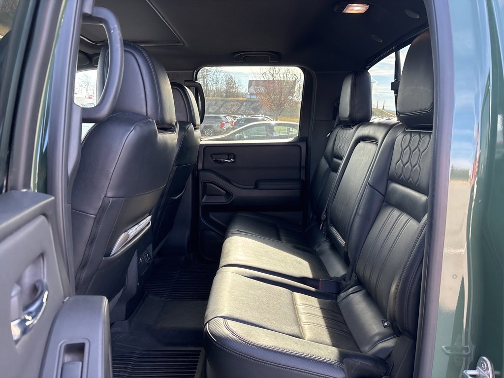 120V Power Outlet in Bed, 120V Power Outlet in Rear Center Console, 17" Accessory Dark Beadlock Style Alloy Wheels, All Lava Red Accent Stitching Delete, Auto-Dimming Mirror, Auto-Tilt & Slide Sunroof w/Manual Shade, Bed Under-Rail Lighting, Fender Premium Audio System w/10 Speakers, Front & Rear Leather Seat Trim (1st/2nd), Heated Front Seats, Heated Outside Mirrors, Heated Steering Wheel, HomeLink UGDO, Intelligent Around View Monitor (I-AVM), Navigation system: Nissan Navigation with Voice Recognition, Off-Road Protection Package, PRO-4X Comfort & Convenience Package, PRO-4X Premium Package, Remote Engine Starter, Spray-In Bedliner, Trailer Hitch w/Wiring Harness, Unique Premium Center Console Stitching, Unique Premium Door Trim, Utili-Track System, Wireless Charging For Personal Devices.
